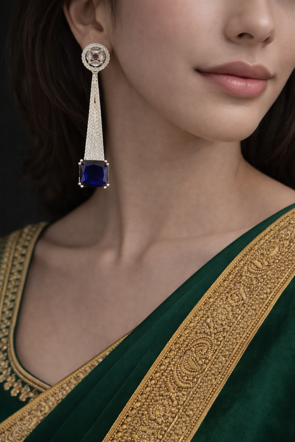 Command attention with Nexli’s Midnight Blue American Diamond Drop Earrings, designed for women who prefer refined luxury over loud statements. These earrings feature a structured vertical silhouette, set with high-shine American diamonds that lead to a bold, square-cut midnight blue stone at the base.